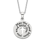 From the Grace collection of faith inspired jewelry, this pendant features a cut-out cross and is engraved with the words from Numbers 6:24-6:26, May the Lord bless you and keep you. Includes an 18" chain.